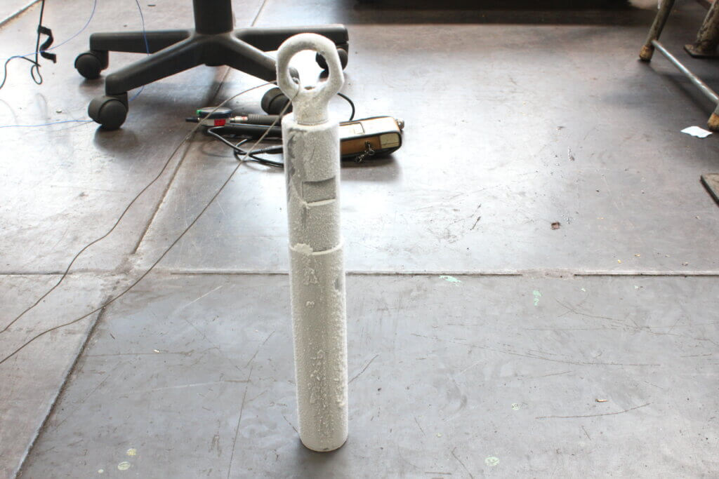 冷却され真っ白になっています。これにより内径との隙間が確保でき余裕を持った作業が行えます