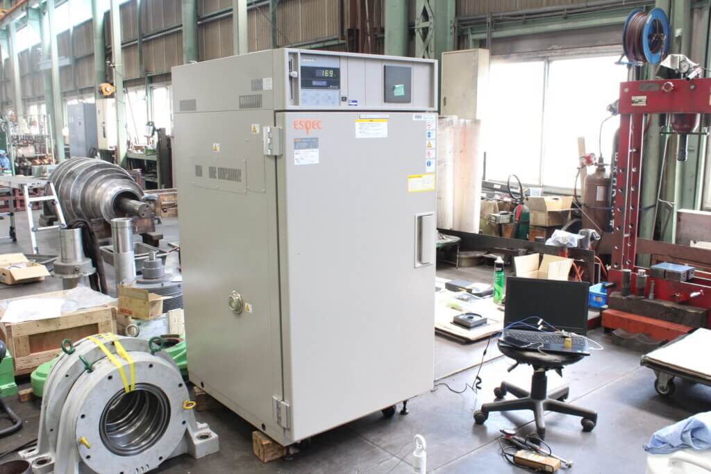 ある会社のある製品の組立を行うにあたり外部から急激な熱の上昇をすることなく焼き嵌めと冷やし嵌めを行いたいとの依頼が弊社へ入りました。この要望に応えるため恒温槽のレンタルを行います。今回レンタルした恒温槽はエスペック社の製品でプログラムを行い所定の温度で保持するようにします。一旦プログラムを行い製品を恒温槽内に入れて熱電対と実体温度計との温度差を測定し恒温槽の設定温度を適切な狙い値になるように調整を行います。