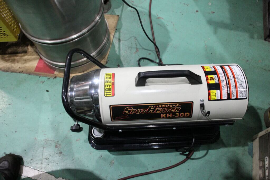 サイズも大きくなく、場所もとらないのになかなかの火力です。連続運転しておけば、もちろん風が吹く線上と周囲は温かいですが、工場全体もそれとなく暖かくなる感じがします。