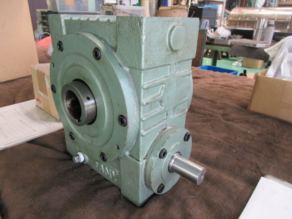 装置やラインに使用される機械の大き上の制約により、機械自体にマウントするような小型な減速機が使用される場合があります。よく見る弁当箱のようなこの小さな減速機の整備依頼を得て、分解点検を実施しました