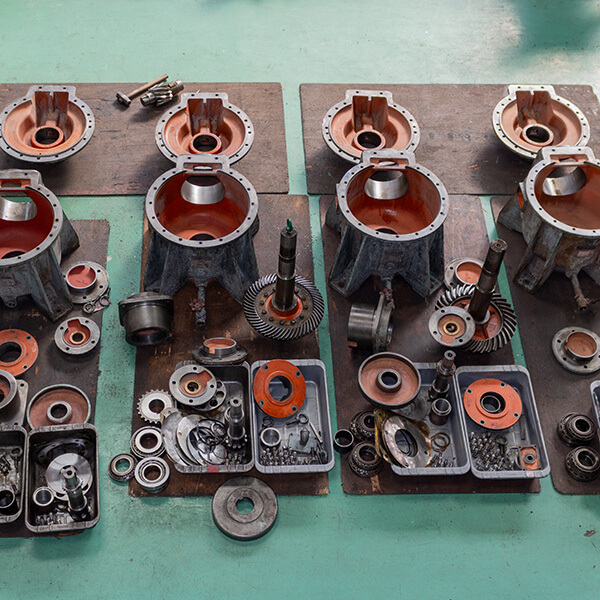 振動を抑制することで安定して運転を続けるための高精度な動バランス修正、補修が不可能な部品の新規製作による減速機の長寿命化などの他に、海外製減速機では部品の調達、JISへ適合させるための改造も行ない、それぞれの状況に最も適した内容で整備を実施しています。